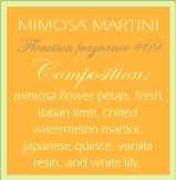 Filled to the brim with proprietary creamy wax, the Floraison 10 oz. Candlepot is easily as decorative as it is fragrant. The creamy wax is combined with handmade perfume fragrance in a soft silky frosted glass with an elegant pastel glaze ceramic lid packaged in a hexagonal color box. Burns 85 hours. Mimosa Martini blends Mimosa Flower Petals, Fresh Italian Lime, Chilled Watermelon Martini, Japanese Quince, Vanilla Resin, and White Lily.