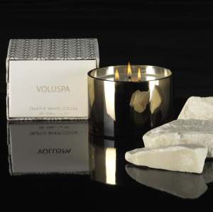 Voluspa Seasons 3-Wick Color Metallic Candle in Velvet Box - Truffle White Cocoa.