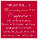 Filled to the brim with proprietary creamy wax, the Floraison 4 oz. Candlepot is the smaller version of the large Candlepot packaged into a cute colorful box. The creamy wax is combined with handmade perfume fragrance in a soft silky frosted glass; each candle will easily scent a medium to large room with a 35 hour burn time. Mignonette blends Mignonette Blooms, Lavender Bulgaria, Raspberry and Tangerine Leaves, Vanilla Flower, Almond Milk, Rosewood, and White Talc.