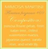 Filled to the brim with proprietary creamy wax, the Floraison 4 oz. Candlepot is the smaller version of the large Candlepot packaged into a cute colorful box. The creamy wax is combined with handmade perfume fragrance in a soft silky frosted glass; each candle will easily scent a medium to large room with a 35 hour burn time. Mimosa Martini blends Mimosa Flower Petals, Fresh Italian Lime, Chilled Watermelon Martini, Japanese Quince, Vanilla Resin, and White Lily.