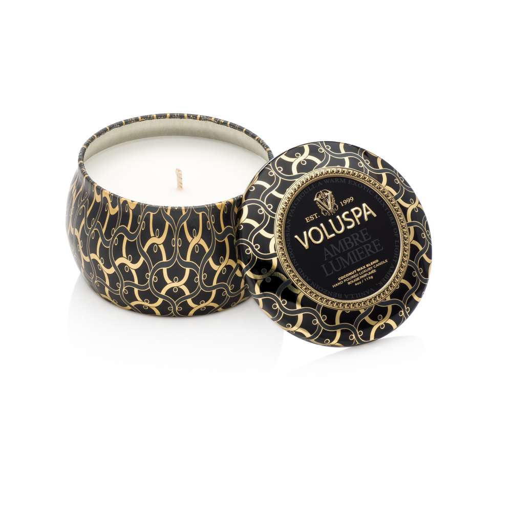 Made of perfumed natural coconut wax poured in a sweet printed metal tin. Ideal for travel, and for trying new fragrances.