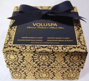 Voluspa Seasons Black Box Gift Set in Winter, Autumn, Holiday and Celebration.