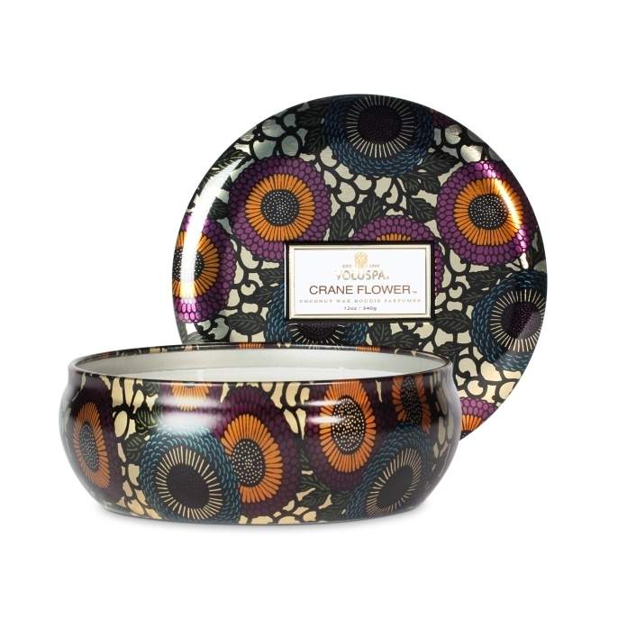 Voluspa Crane Flower 3 Wick Candle Tin.