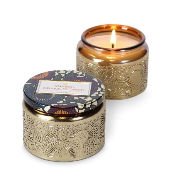 Voluspa Crane Flower Small Glass Jar Candle.