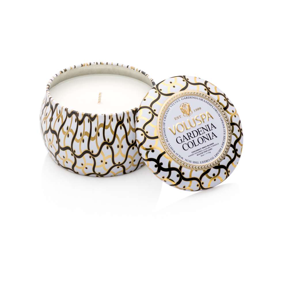 Made of perfumed natural coconut wax poured in a sweet printed metal tin. Ideal for travel, and for trying new fragrances.