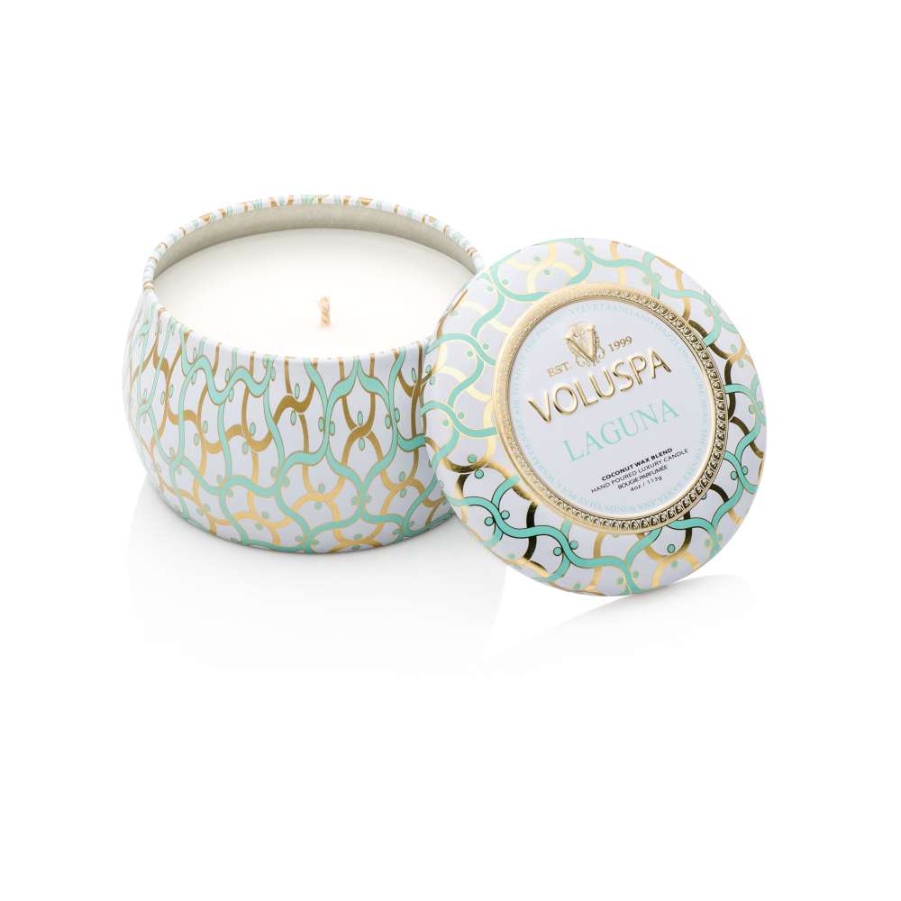 Made of perfumed natural coconut wax poured in a sweet printed metal tin. Ideal for travel, and for trying new fragrances.