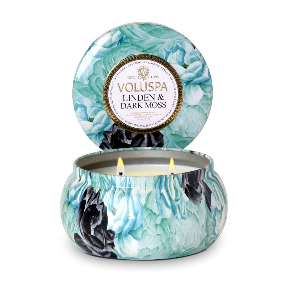 Voluspa Linden and Dark Moss 2 Wick Candle Tin