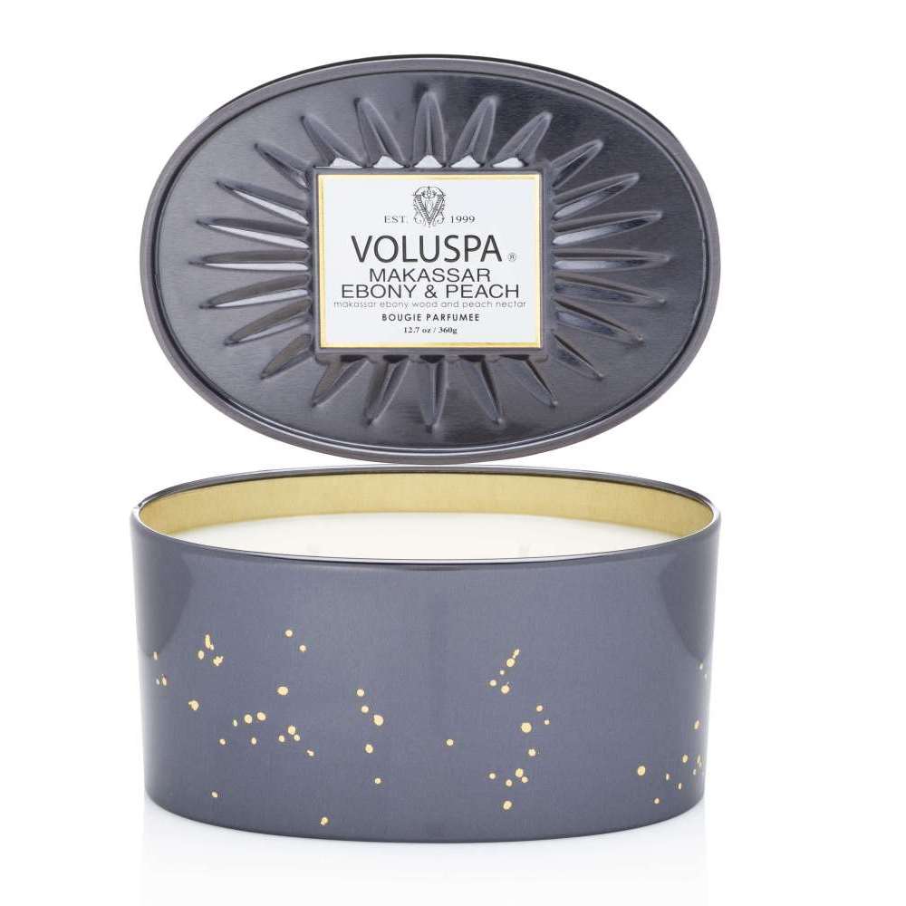 Voluspa Makassar Ebony & Peach 2 Wick Decorative Oval Tin