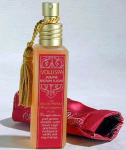 Voluspa parfum in Jasmine Brown Sugar. 1 oz. of the sexiest scents ever! The signature silk slip that the miniature atomizer comes in fits inside perfectly inside a purse.