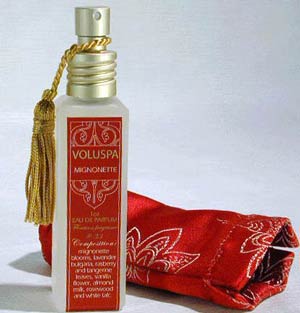 Voluspa parfum in Mignonette. 1 oz. of the sexiest scents ever! The signature silk slip that the miniature atomizer comes in fits inside perfectly inside a purse.