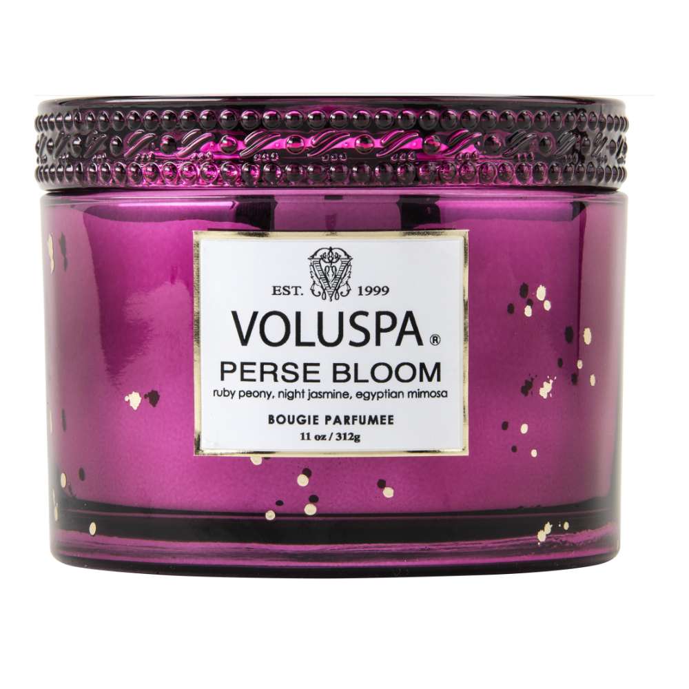 Distressed and Gold speckled vintage silver vermeil graces these glass candles. Exclusive formulation of the highest quality waxes and fragrances fill these graceful glass shapes with intricately embossed lids. For the holidays or any time of year the vermeil collection is to be treasured and shared.