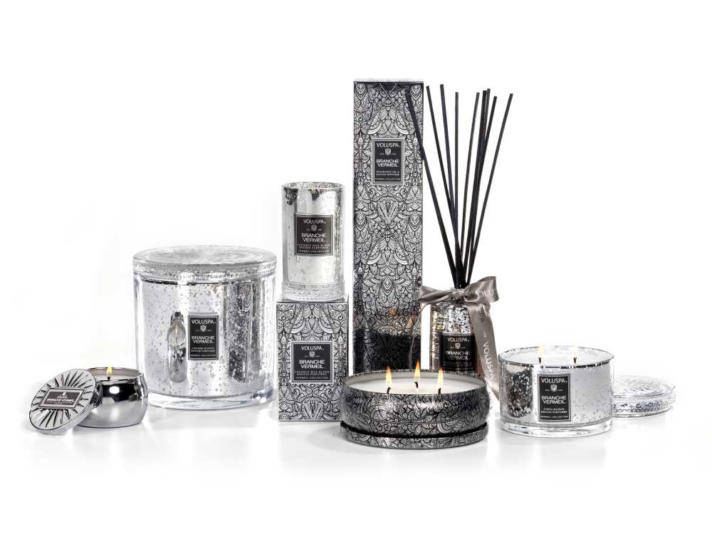 Voluspa Slender Petite Candle in Branche Vermeil.