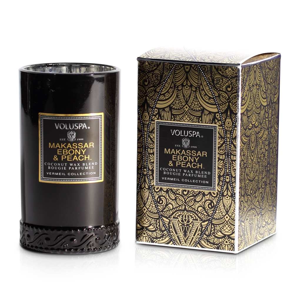 • Fragrance: A classic Voluspa fragrance with a unique blend of woody Black Ebony blended with Ripe juicy Peaches, and fragrant Apple Blossoms.