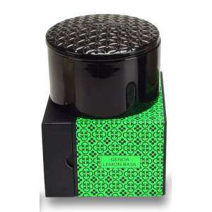 A generous 20 oz. three wick candle in a Luxe black ceramic bowl with an elegant pattern embossed lid. This candle will fragrance a room like no other leaving a lasting scent of your favorite fragrance in even the largest space. The supreme quality, cool burning soft wax formulation lends to the creation of an extended 120 hour burn time. Re-use the decorative container when the candle is gone. Genoa Lemon Basil sparkles with the lively flavors of Italy - Genoa basil, Italian lemon rind, clary sage, and coriander.