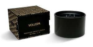 NEW! Voluspa Seasons Three-wick Candle in Makassar Ebony Peach.