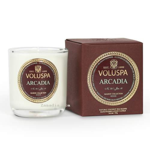 Voluspa Maison Arcadia Boxed Votive in heavy cased glass.