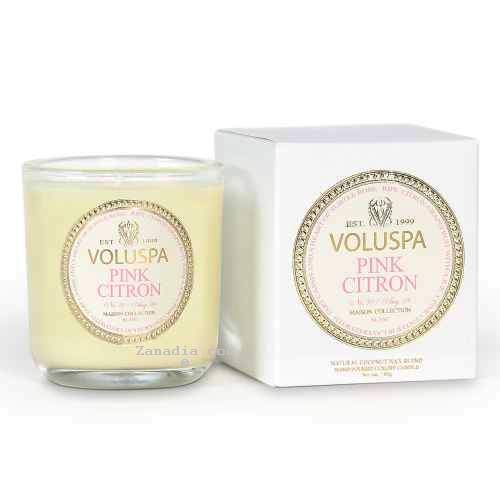 Voluspa Maison Pink Citron Boxed Votive in heavy cased glass.