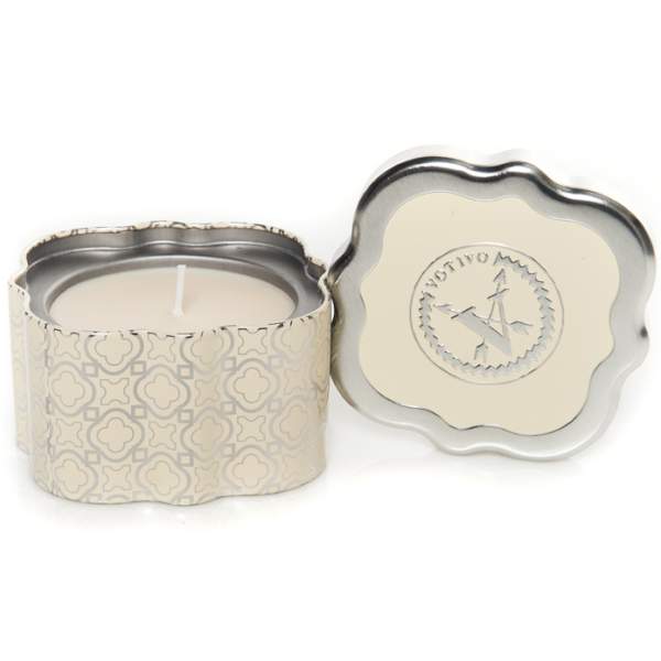 Votivo Candles -Joie de Noel Quatrefoil Tin.