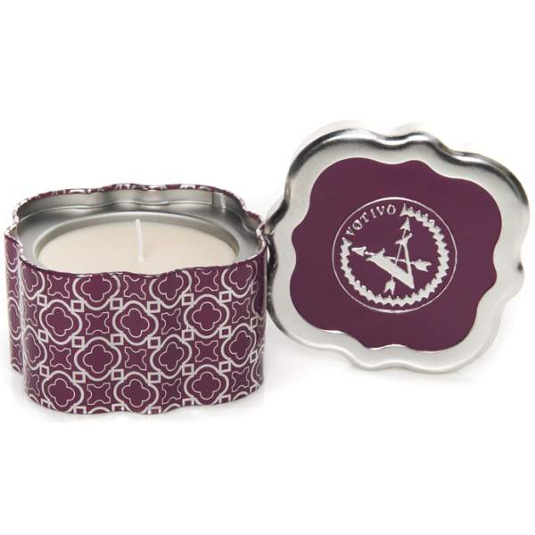 Votivo Candles -Winter Cranberry Quatrefoil Tin.