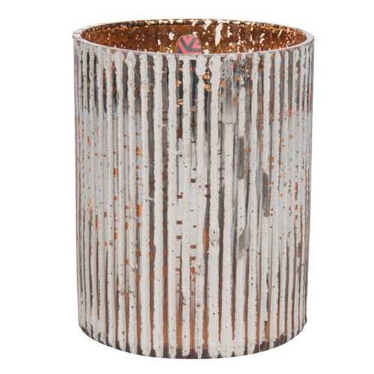 Irregular aged vertical ridges with gold highlights adorn this extra large two wick candle.