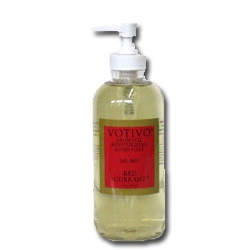 Votivo hand soap pump in Red Currant. Luxurious rich scents found in your favorite Votivo candles are now available in irresistible bath and body care products. Experience the fragrances of Votivo in even more ways! Ingredients include Shea butter and gentle botanical cleansing extracts.