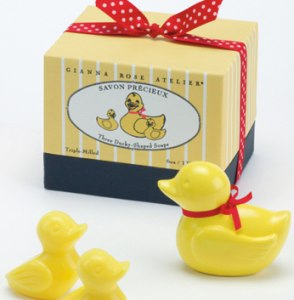 Too precious to describe, this mama and two baby ducky set is triple-milled soap, scented with a water lily fragrance. For the child in all of us . . . quack-quack! .