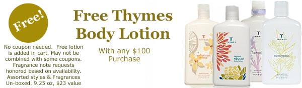 Free Thymes Lotion: With any $100 order.